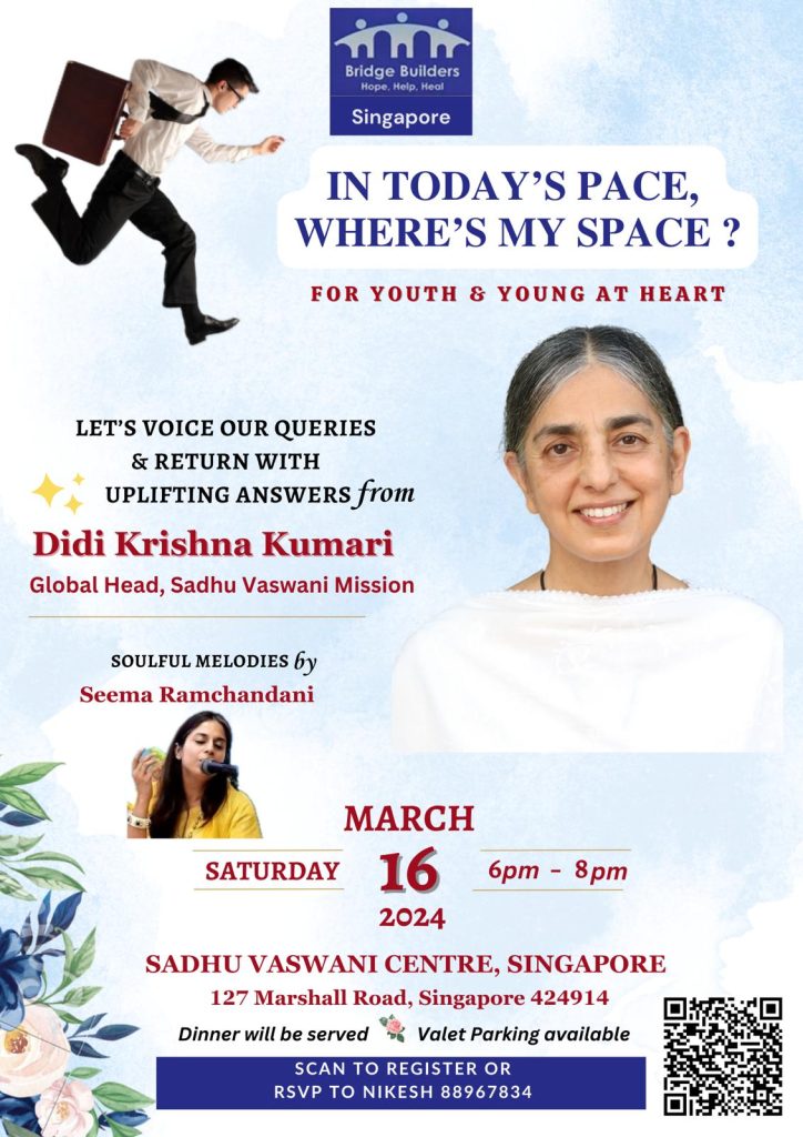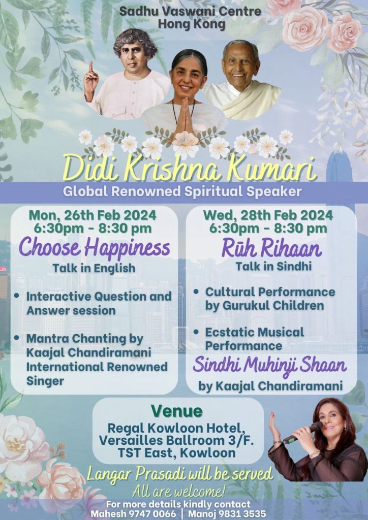 Didi Krishna Kumari, the head of the Sadhu Vaswani Mission, carries forward the work of her spiritual mentors, Sadhu T. L. Vaswani and beloved Dada (Dada J.P. Vaswani), by embarking on worldwide tours. These tours serve as a platform for Didi to share the teachings, wisdom, and principles that underpin the mission's work. They are an opportunity for individuals from diverse backgrounds to connect with her, learn from her profound insights, and be inspired to lead a life rooted in love and compassion. Below are all the details on Didi's South East Asia Tour 2024.​