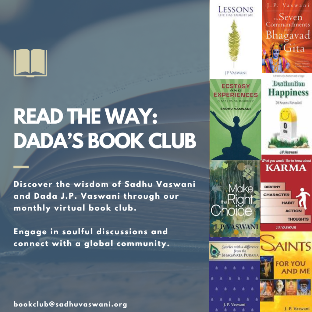 Discover the timeless and beautiful wisdom from the poetic texts of Revered Sadhu Vaswani and Beloved Dada JP Vaswani. To strengthen our connection with these sacred texts, daily audio vachans (sacred reading of the day) are posted in Sindhi from the Nuri Granth or Anjali Sangrah along with English translations in a special WhatsApp group. All are welcome to join for these special ‘Daily Dips.’