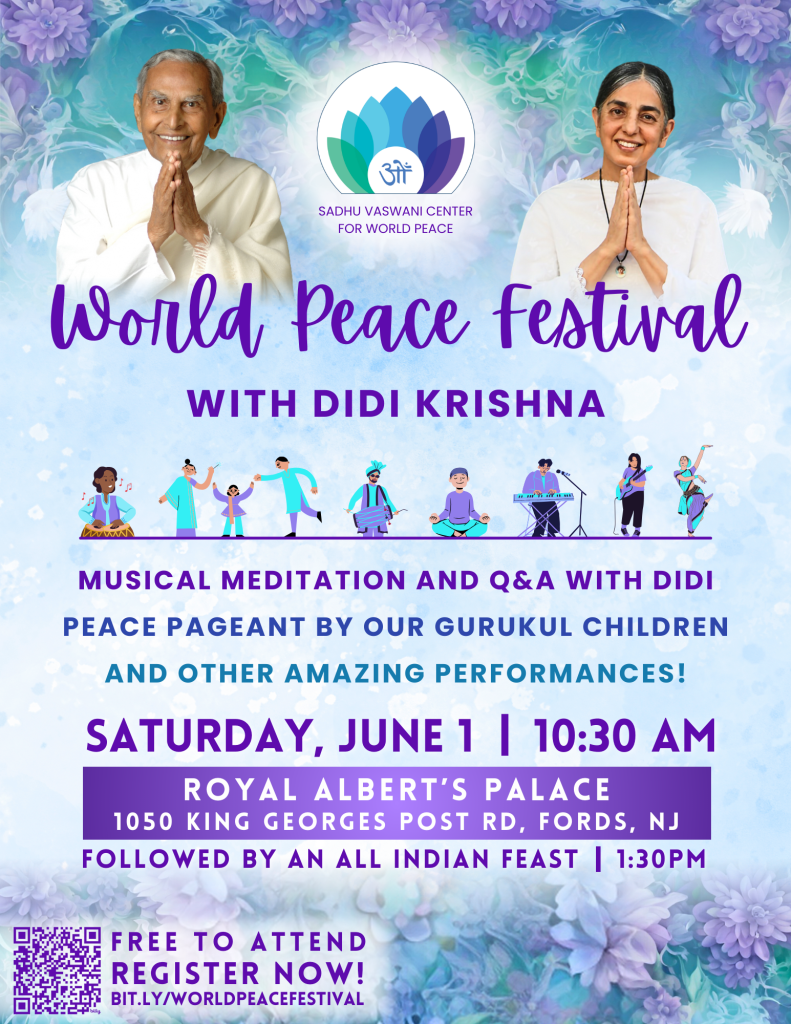 Guided by Didi Krishna as per the vision and steps laid out by beloved Dada, The Sadhu Vaswani Center for World Peace is more than an organization; it is a movement, a sanctuary for peace seekers, and a global community of kindred spirits. Together, we strive to make the world a better place—one act of forgiveness, one compassionate deed, and one moment of unity at a time. Join us in our journey towards a more peaceful and harmonious world, for together, we can be the change we wish to see in the world.